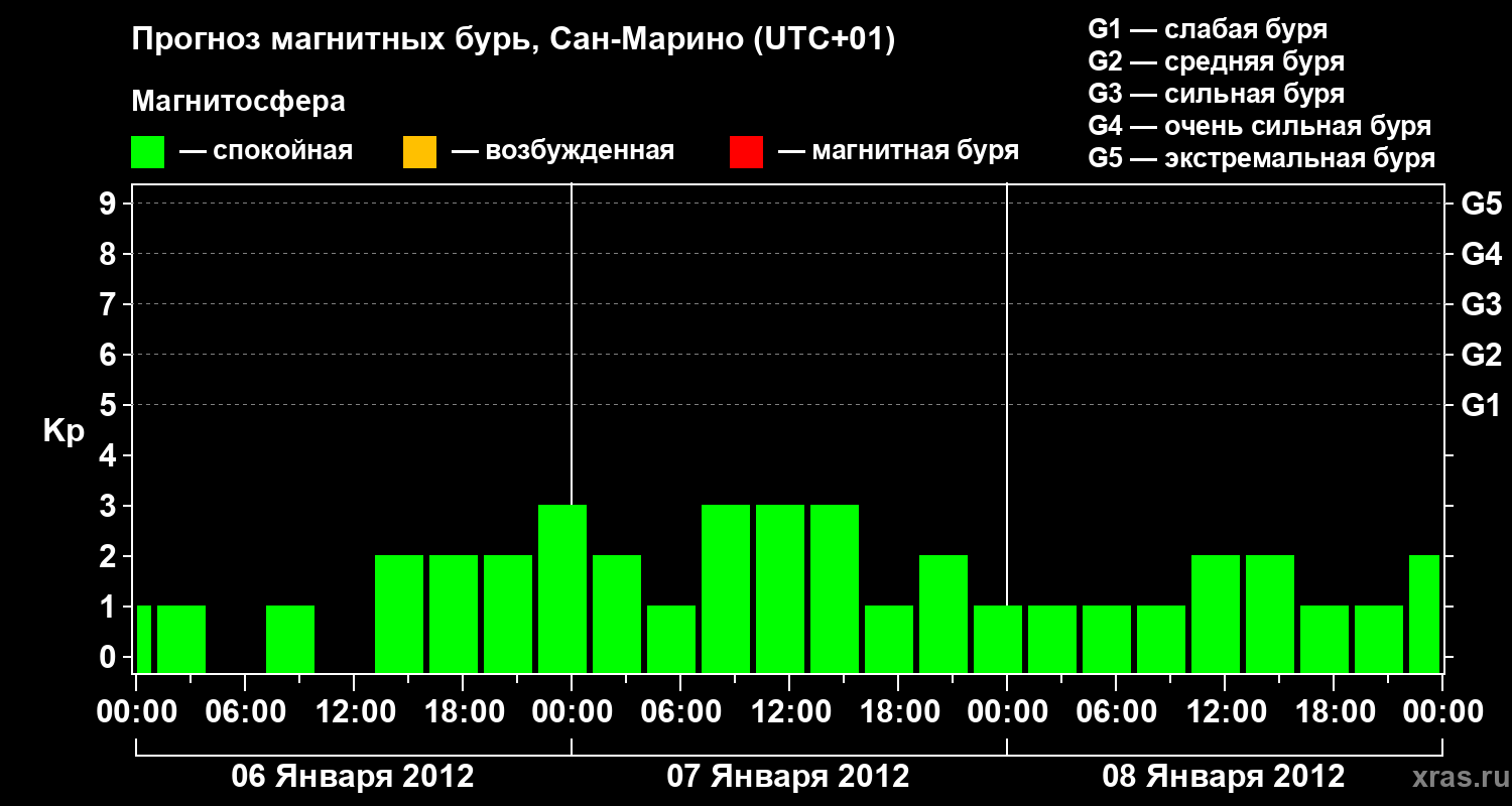 Прогноз магнитных бурь Сан-Марино — 6 января 2012 года