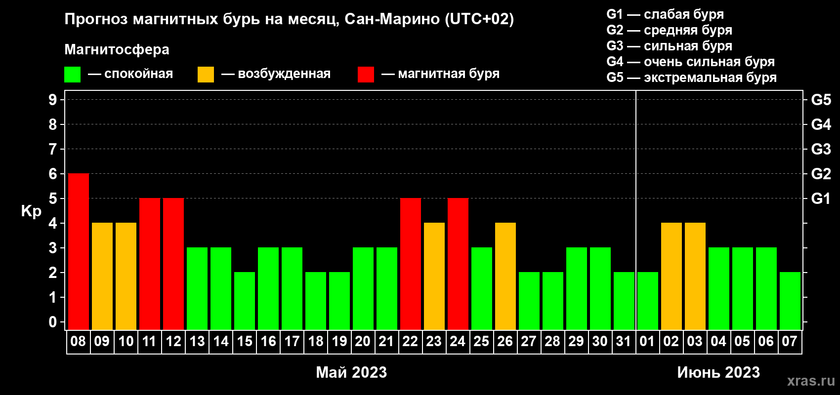 Прогноз магнитных бурь Сан-Марино — 8 мая 2023 года