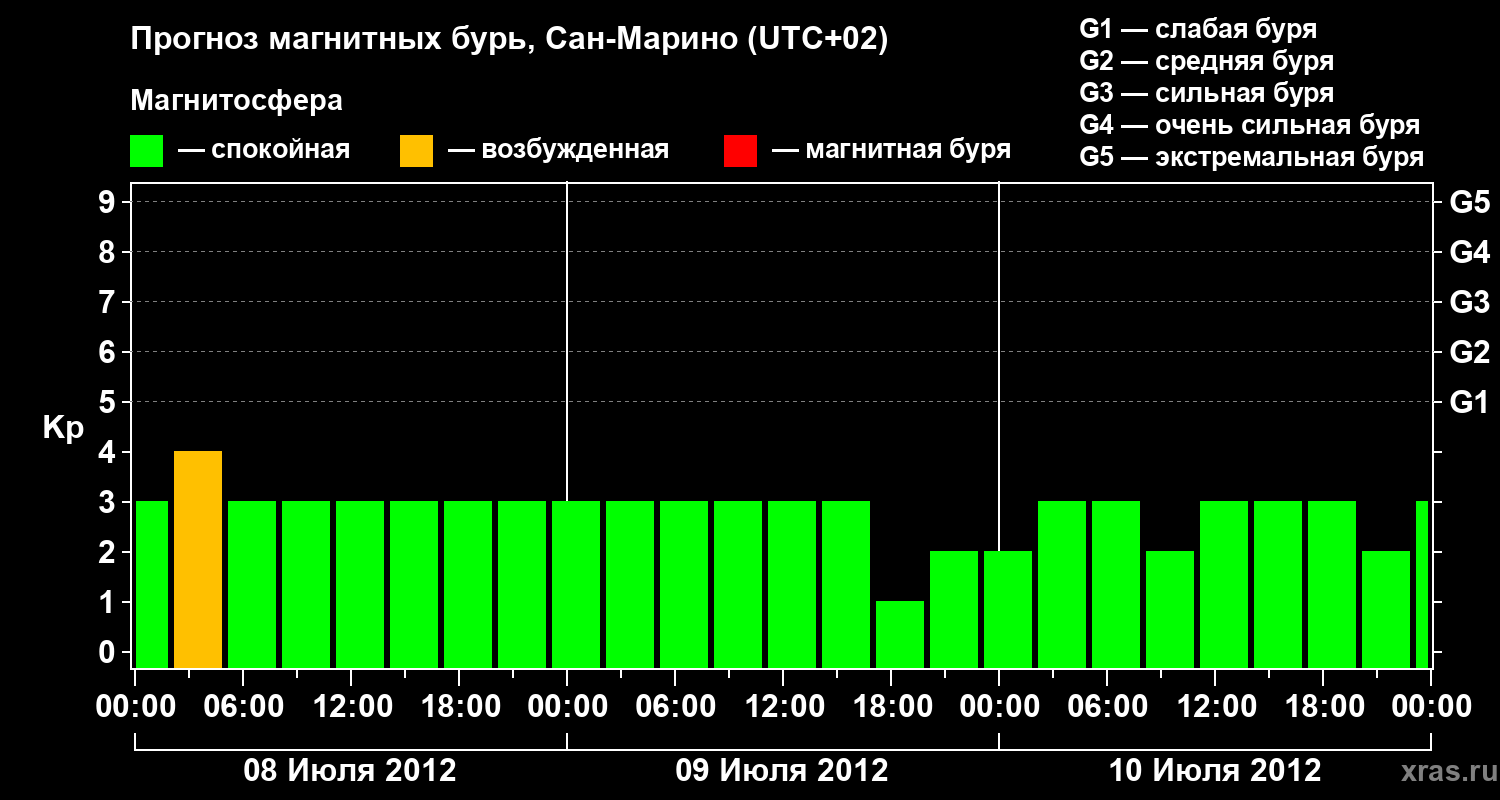 Прогноз магнитных бурь Сан-Марино на 8 июля 2012 года