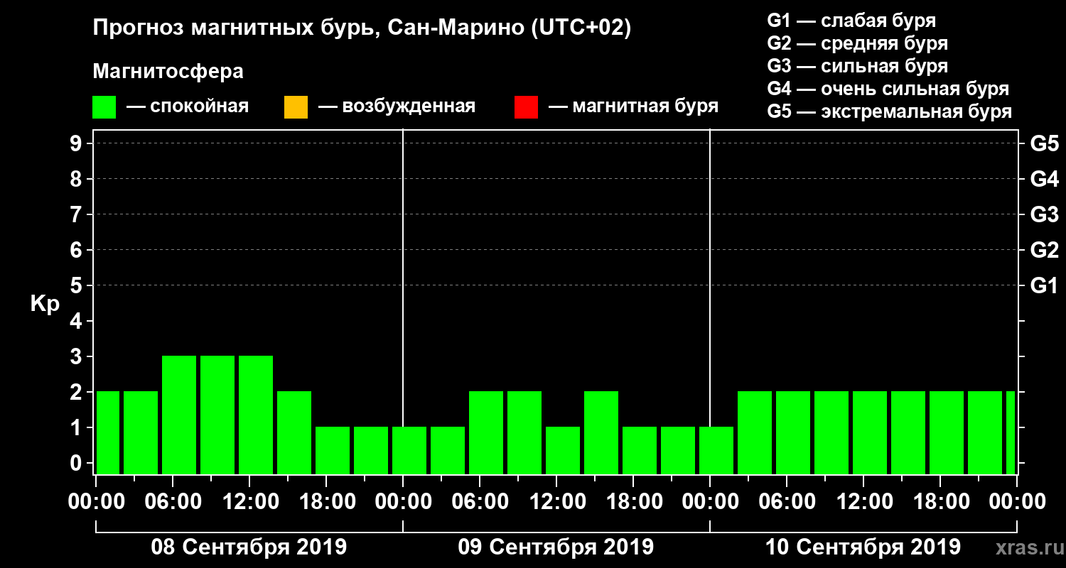 Прогноз магнитных бурь Сан-Марино — 8 сентября 2019 года