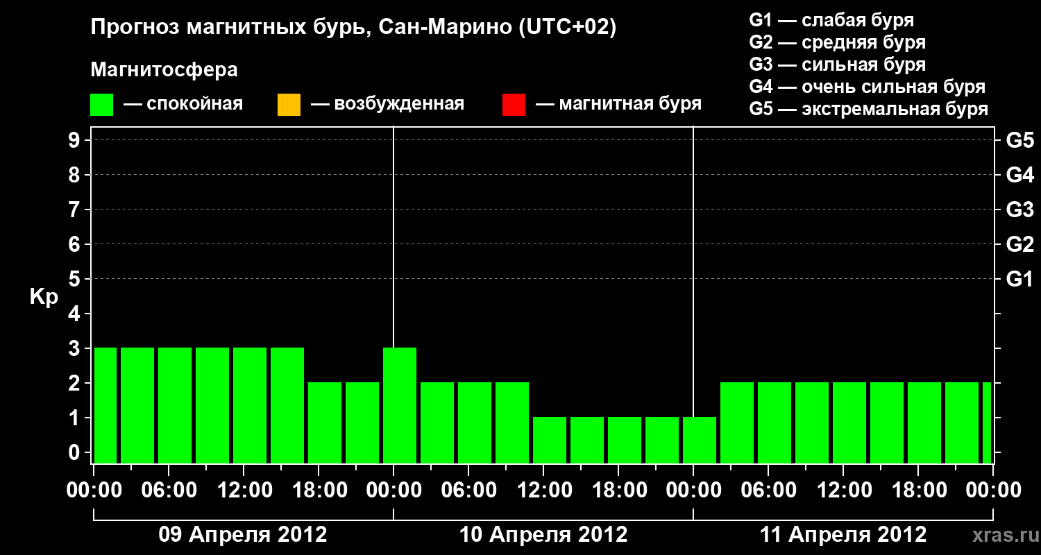 Прогноз магнитных бурь Сан-Марино на 9 апреля 2012 года