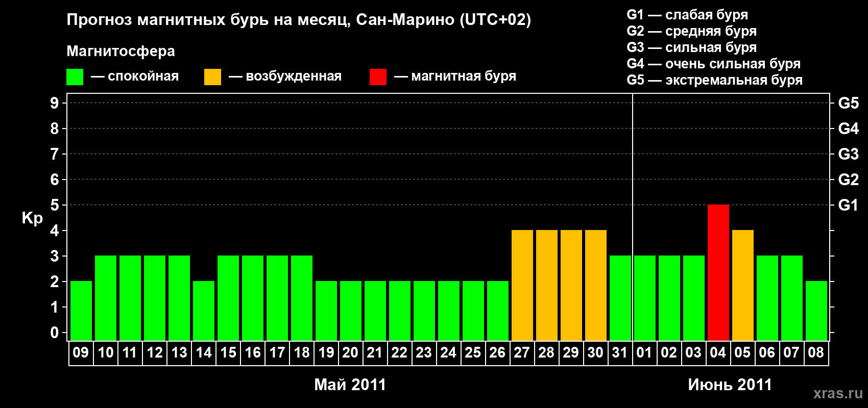 Прогноз магнитных бурь Сан-Марино — 9 мая 2011 года
