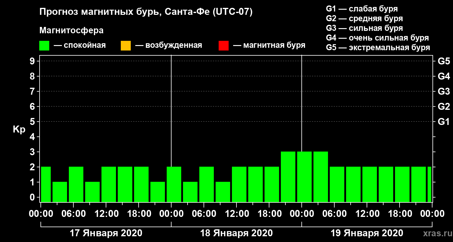 Прогноз магнитных бурь в Санта-Фе — 17 января 2020 года