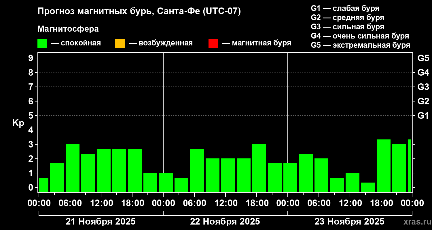 Прогноз магнитных бурь в Санта-Фе на 21 ноября 2025 года
