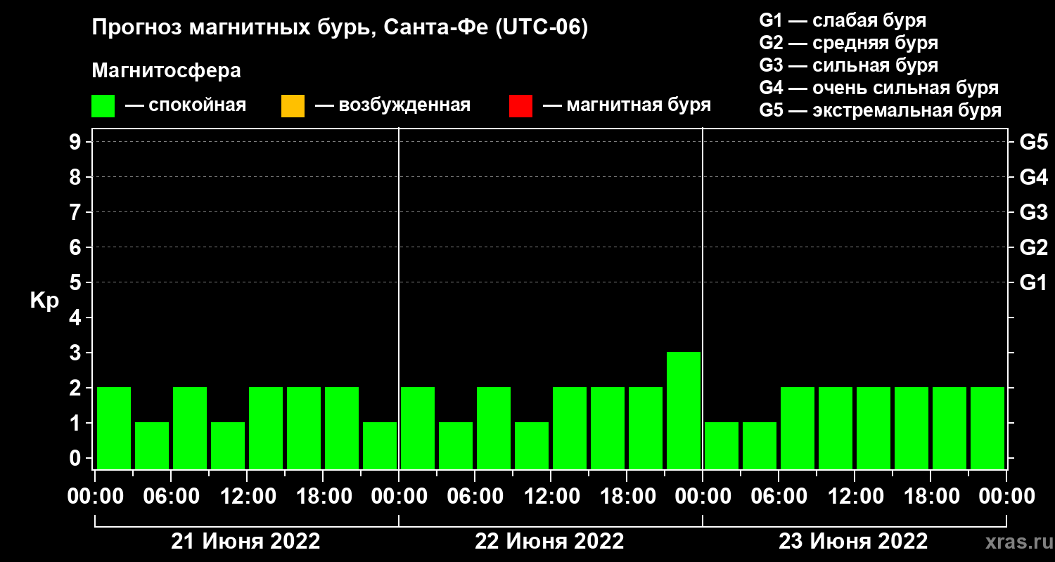 Прогноз магнитных бурь в Санта-Фе — 21 июня 2022 года