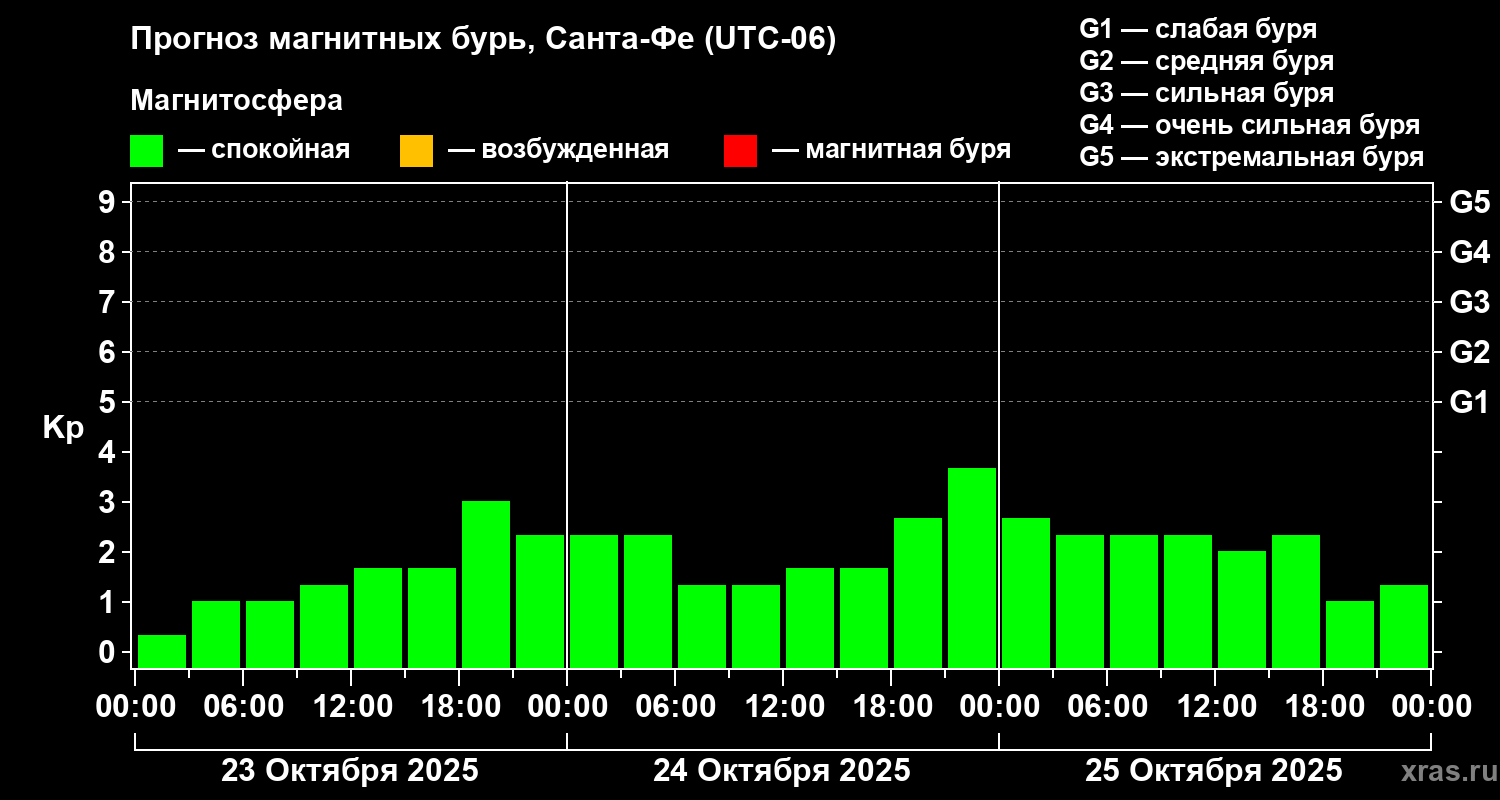 Прогноз магнитных бурь в Санта-Фе на 23 октября 2025 года
