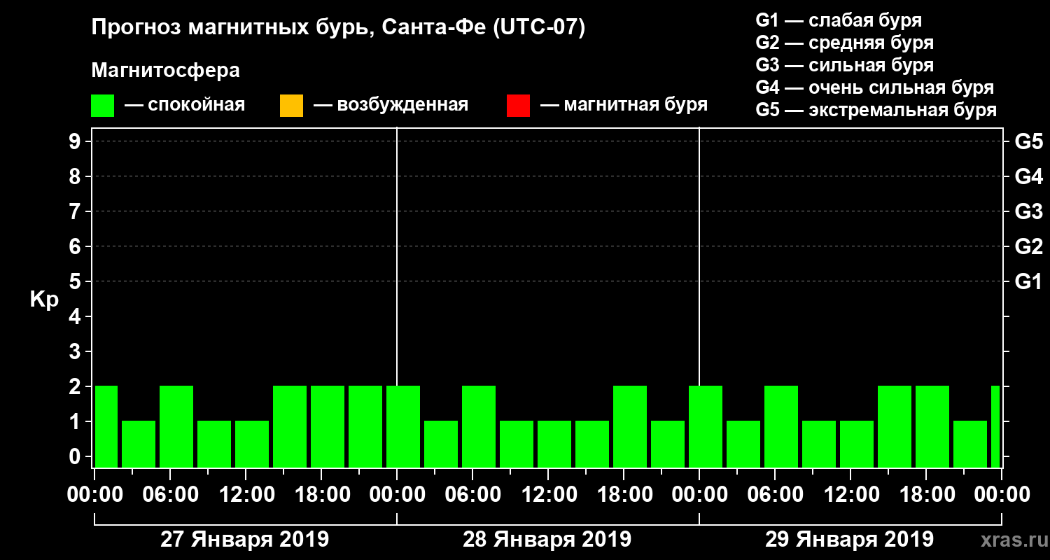 Прогноз магнитных бурь в Санта-Фе — 27 января 2019 года