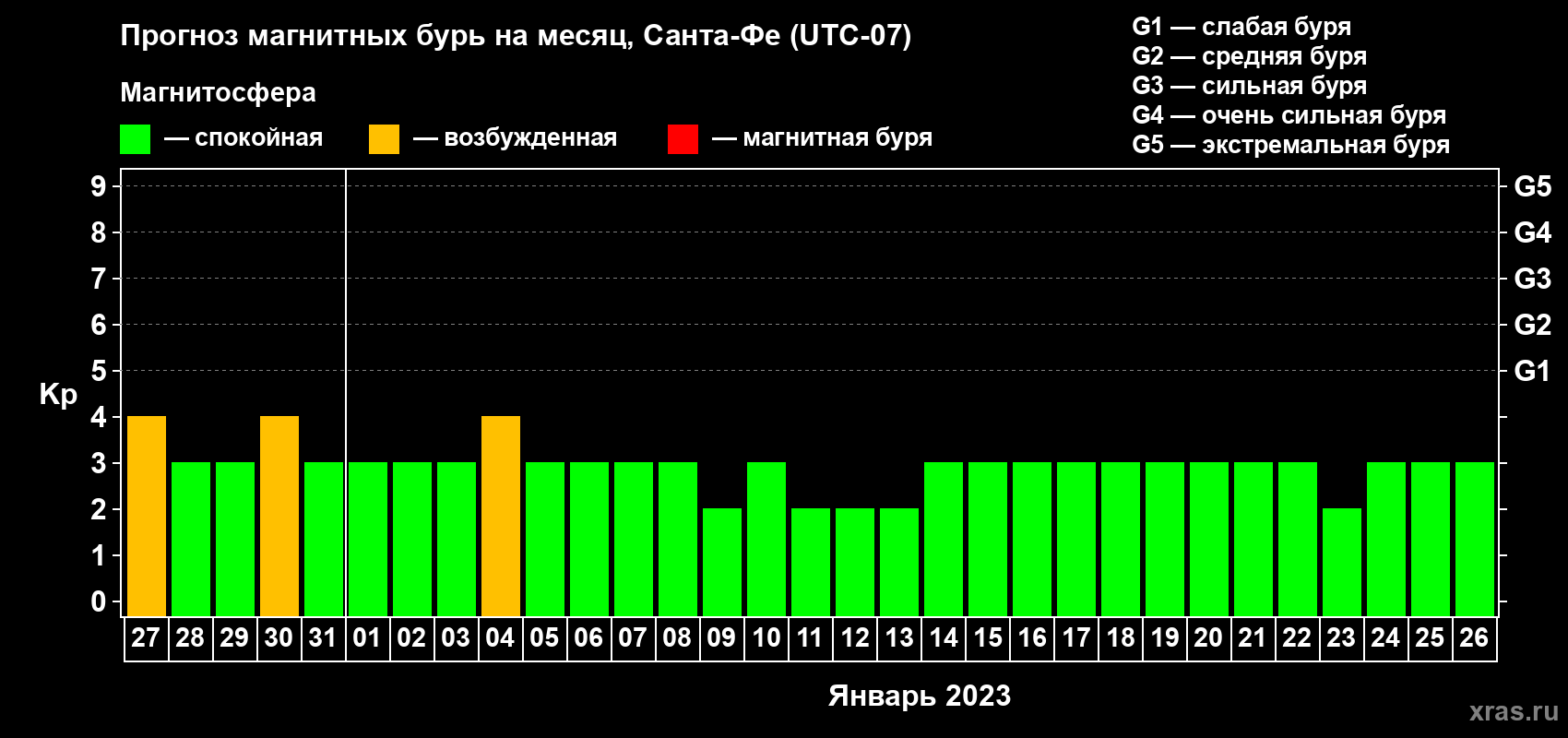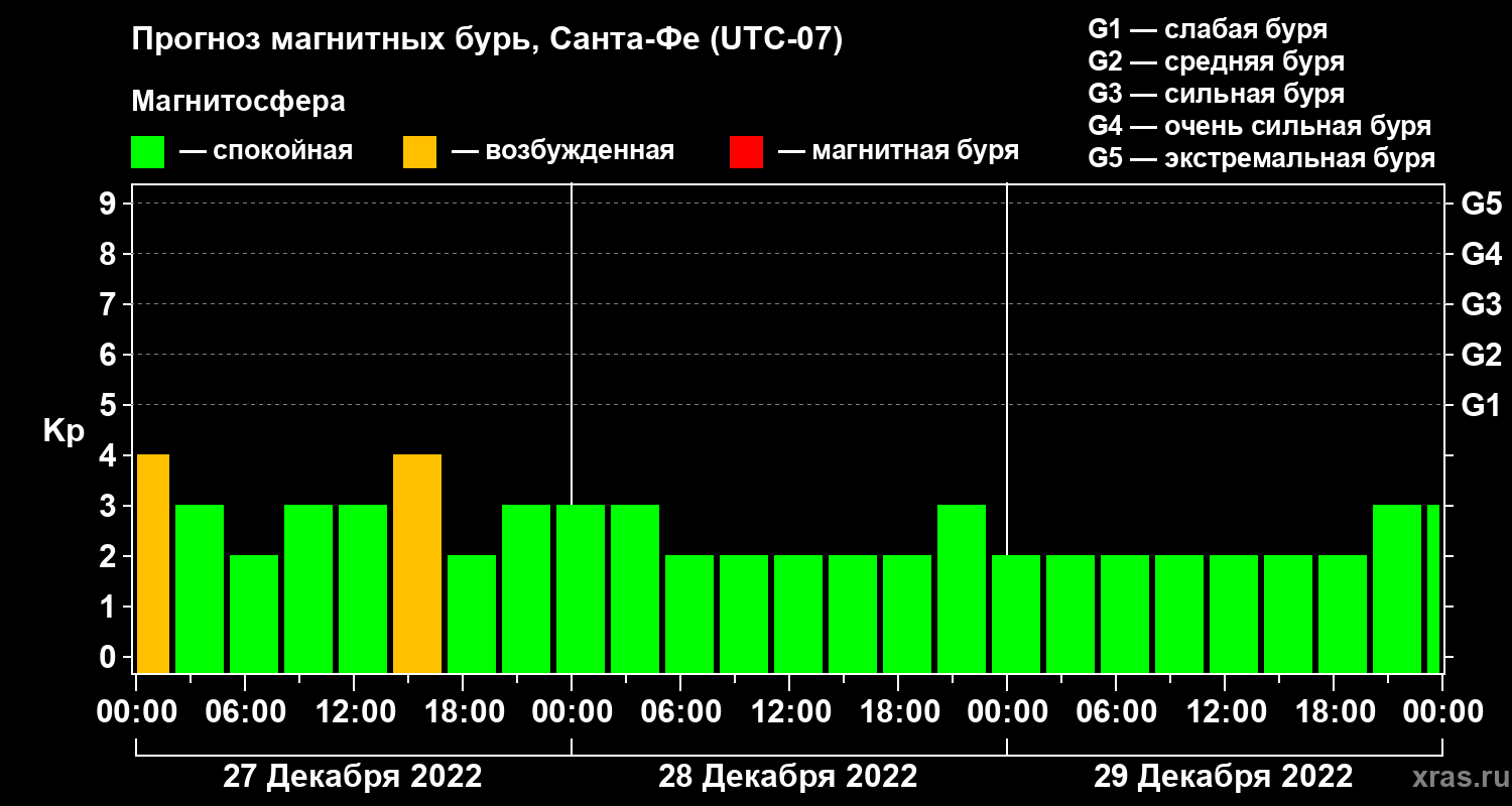 Прогноз магнитных бурь в Санта-Фе — 27 декабря 2022 года