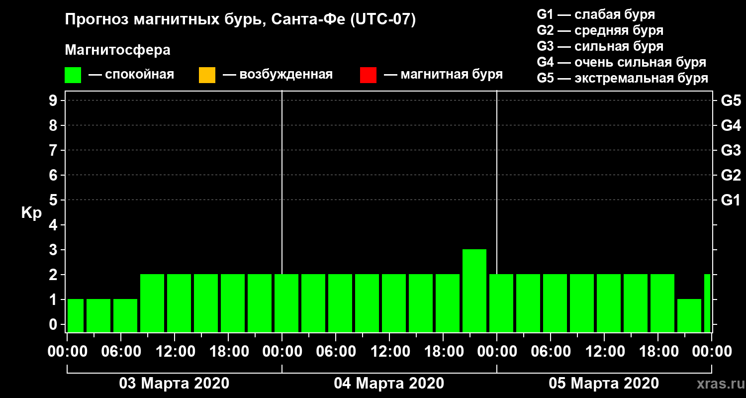 Прогноз магнитных бурь в Санта-Фе — 3 марта 2020 года