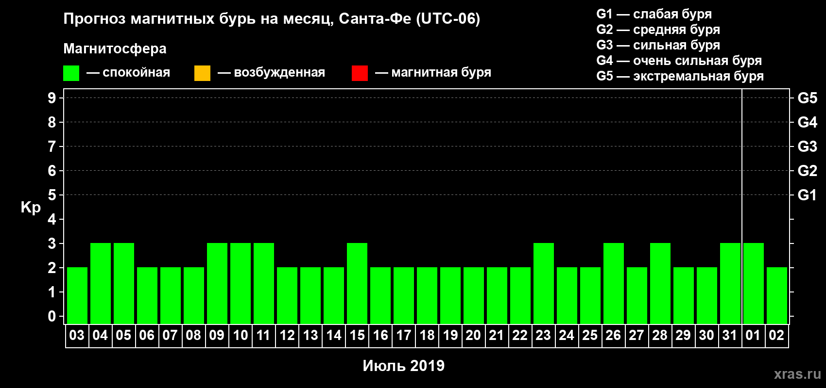 Прогноз магнитных бурь в Санта-Фе — 3 июля 2019 года