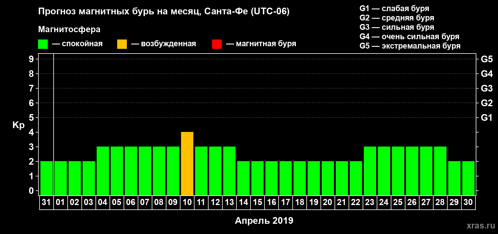 Прогноз магнитных бурь в Санта-Фе — 31 марта 2019 года