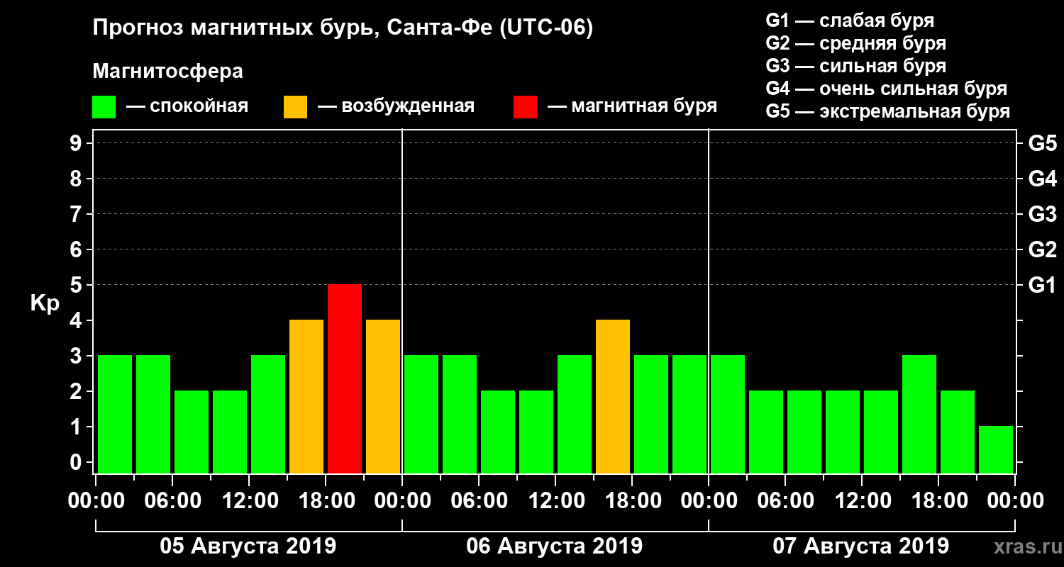Прогноз магнитных бурь в Санта-Фе на 5 августа 2019 года