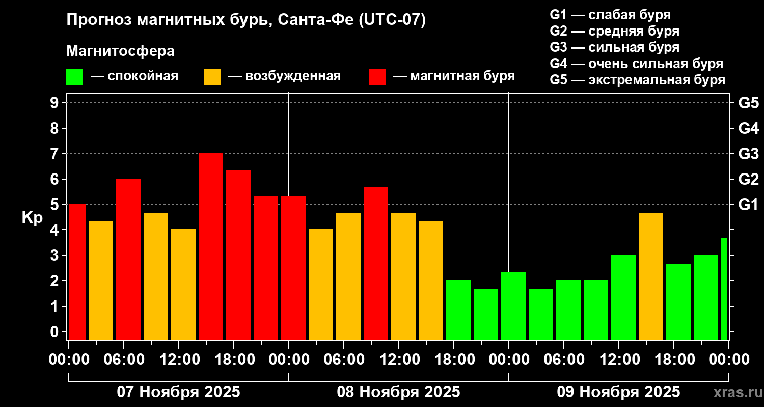 Прогноз магнитных бурь в Санта-Фе — 7 ноября 2025 года