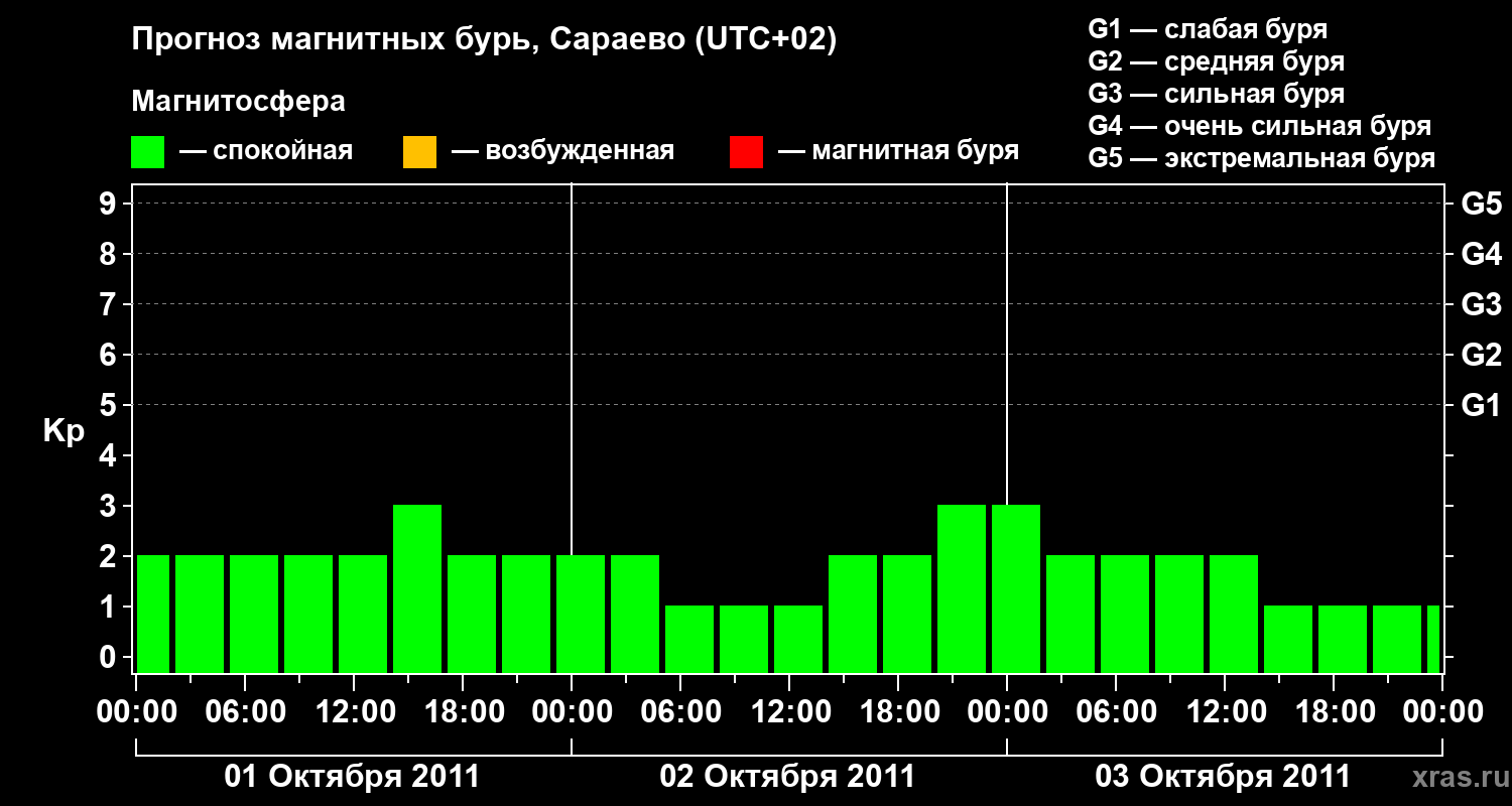 Прогноз магнитных бурь Сараево — 1 октября 2011 года