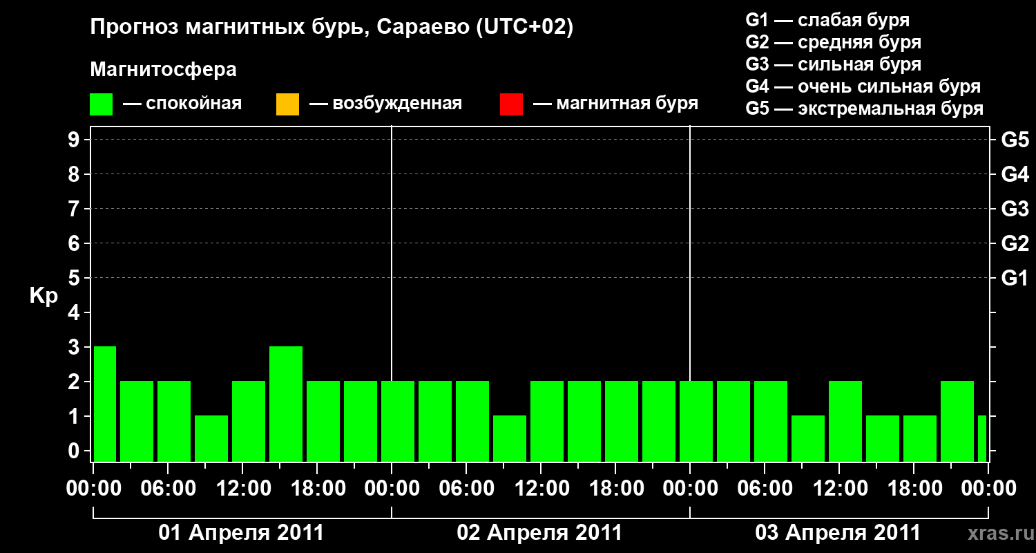 Прогноз магнитных бурь Сараево — 1 апреля 2011 года