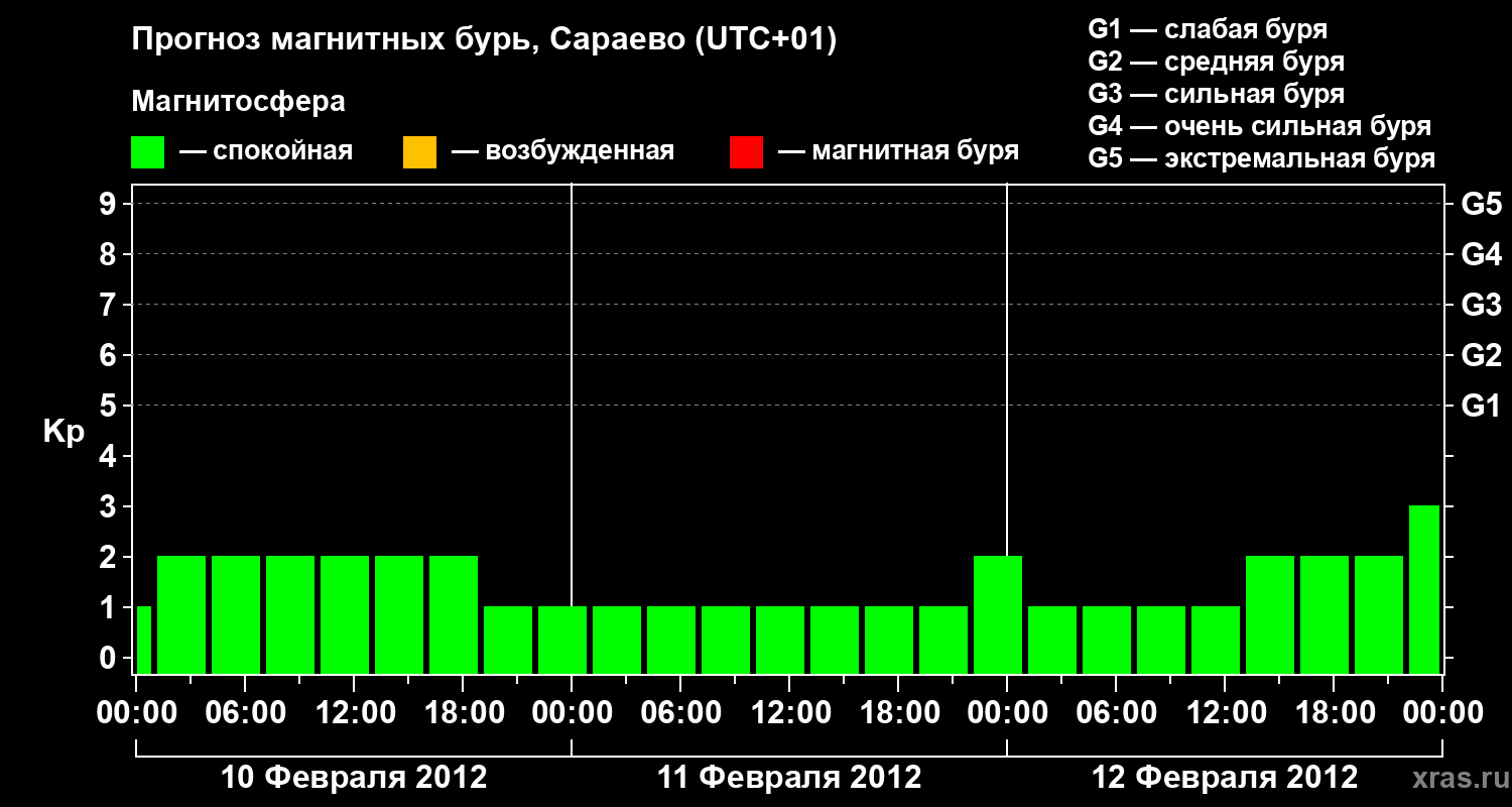 Прогноз магнитных бурь Сараево — 10 февраля 2012 года