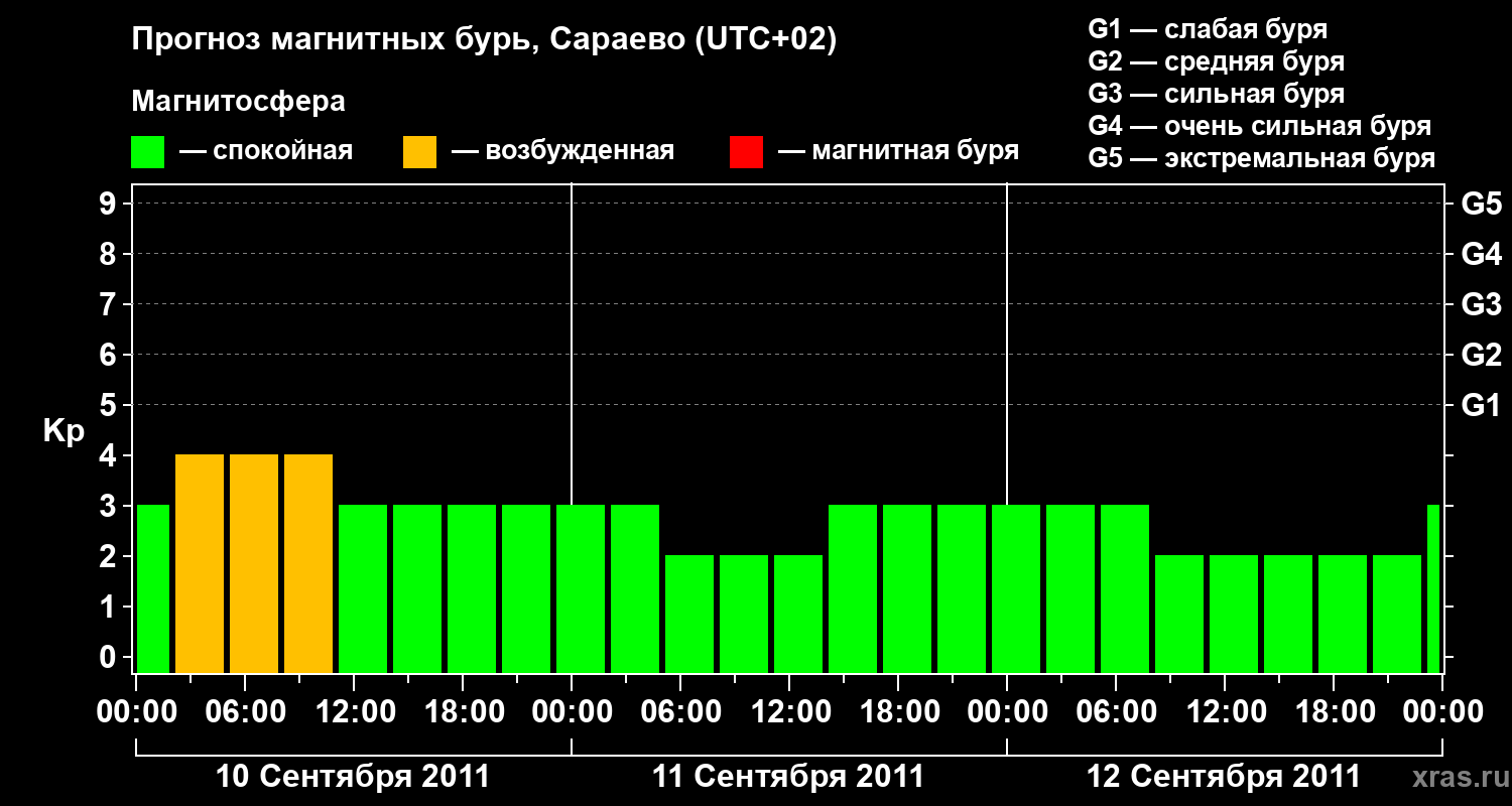 Прогноз магнитных бурь Сараево — 10 сентября 2011 года