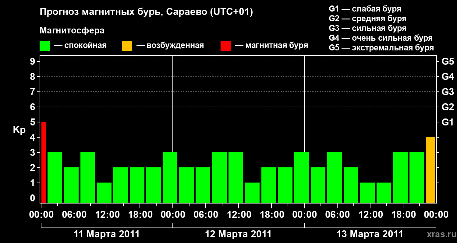 Прогноз магнитных бурь Сараево — 11 марта 2011 года