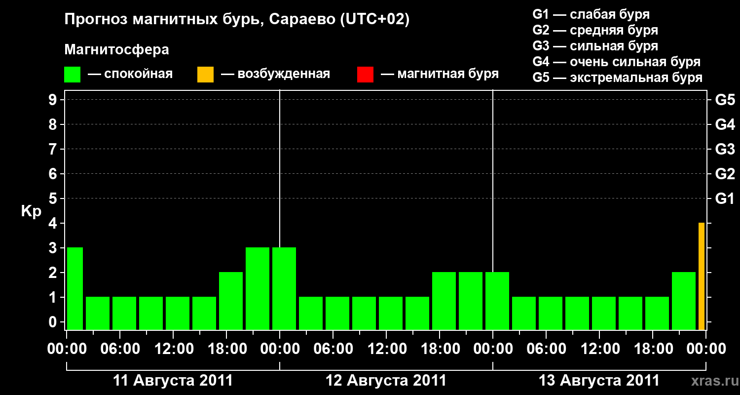 Прогноз магнитных бурь Сараево — 11 августа 2011 года