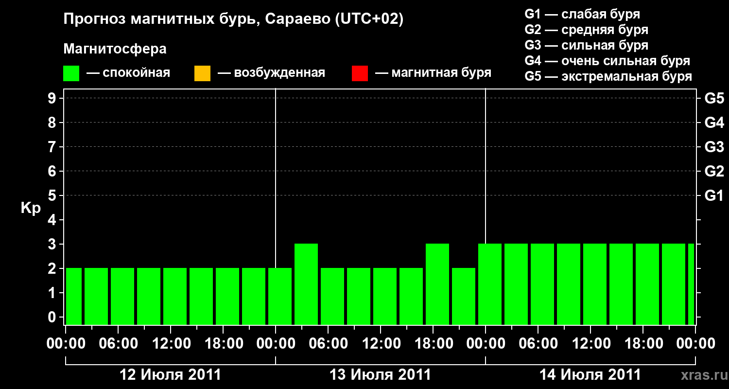 Прогноз магнитных бурь Сараево — 12 июля 2011 года