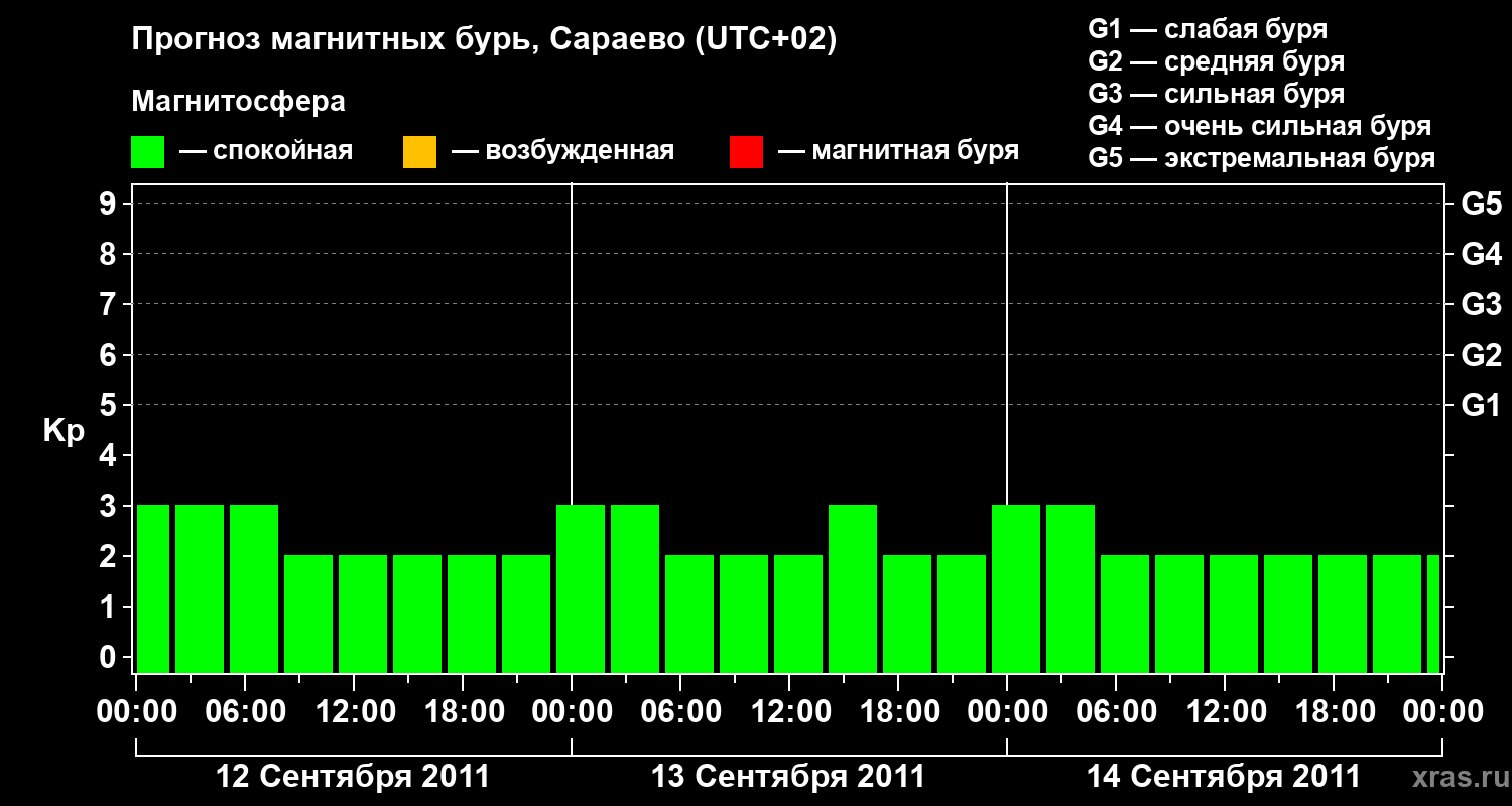 Прогноз магнитных бурь Сараево — 12 сентября 2011 года