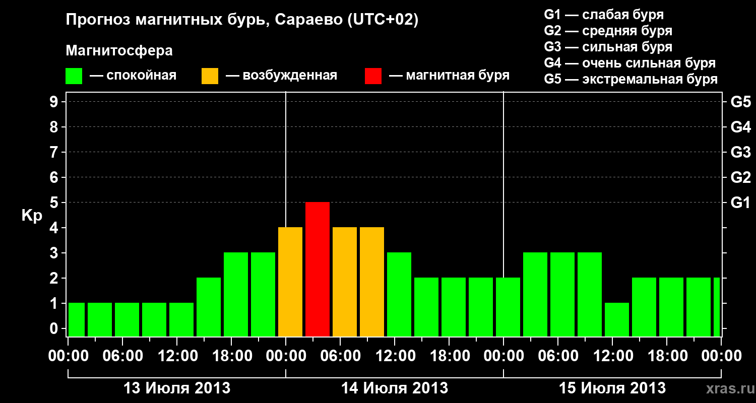 Прогноз магнитных бурь Сараево — 13 июля 2013 года