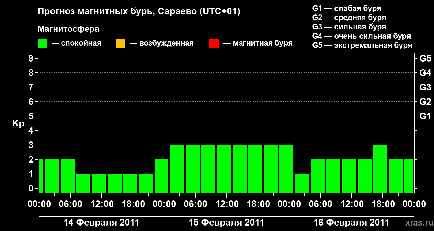 Прогноз магнитных бурь Сараево — 14 февраля 2011 года
