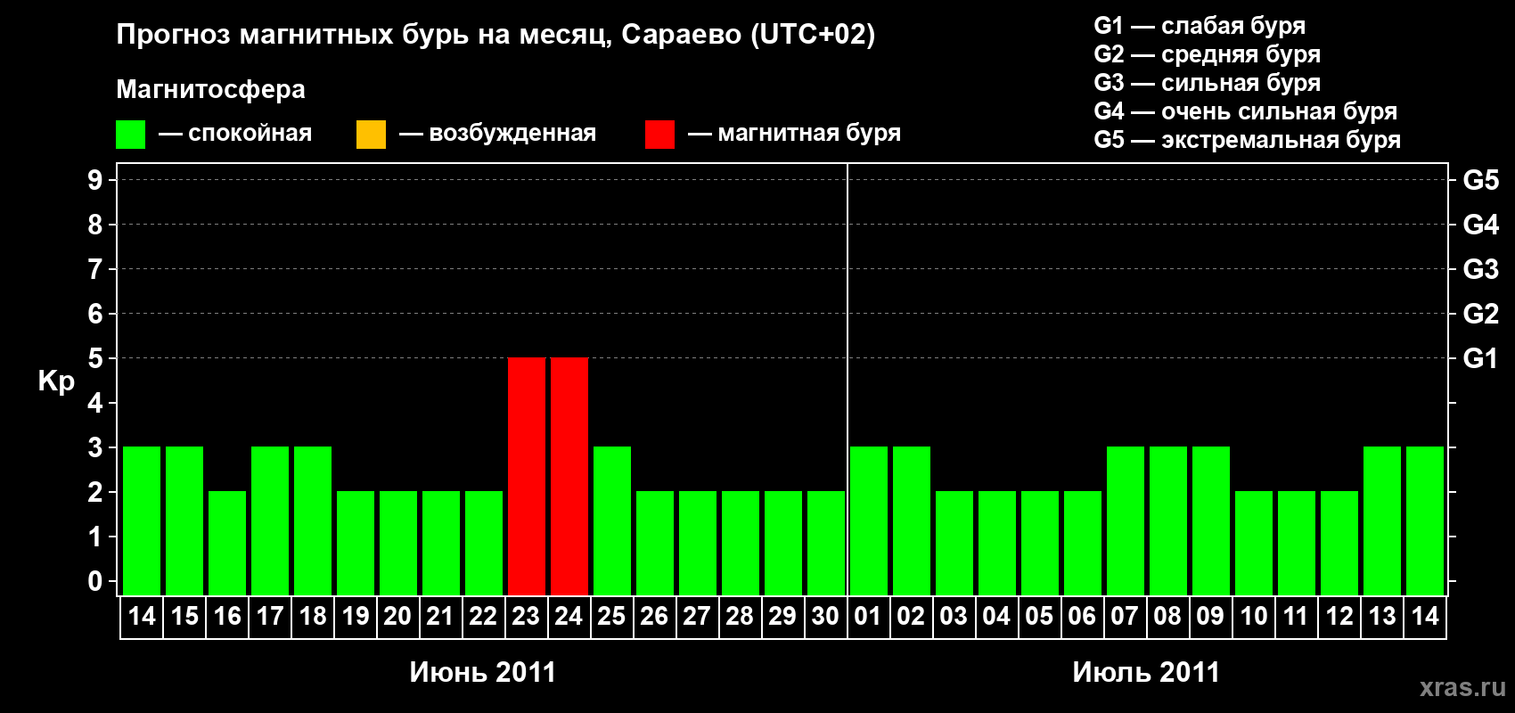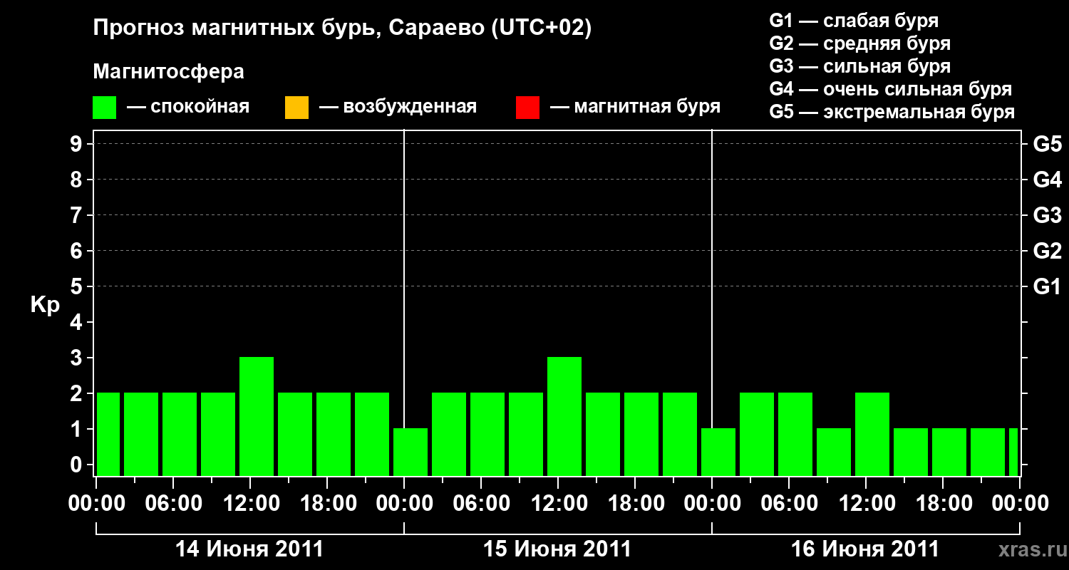 Прогноз магнитных бурь Сараево — 14 июня 2011 года