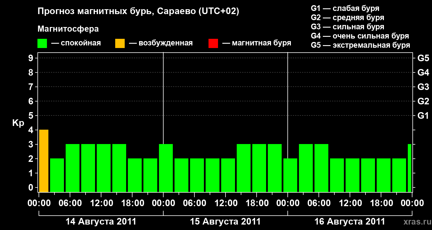 Прогноз магнитных бурь Сараево — 14 августа 2011 года
