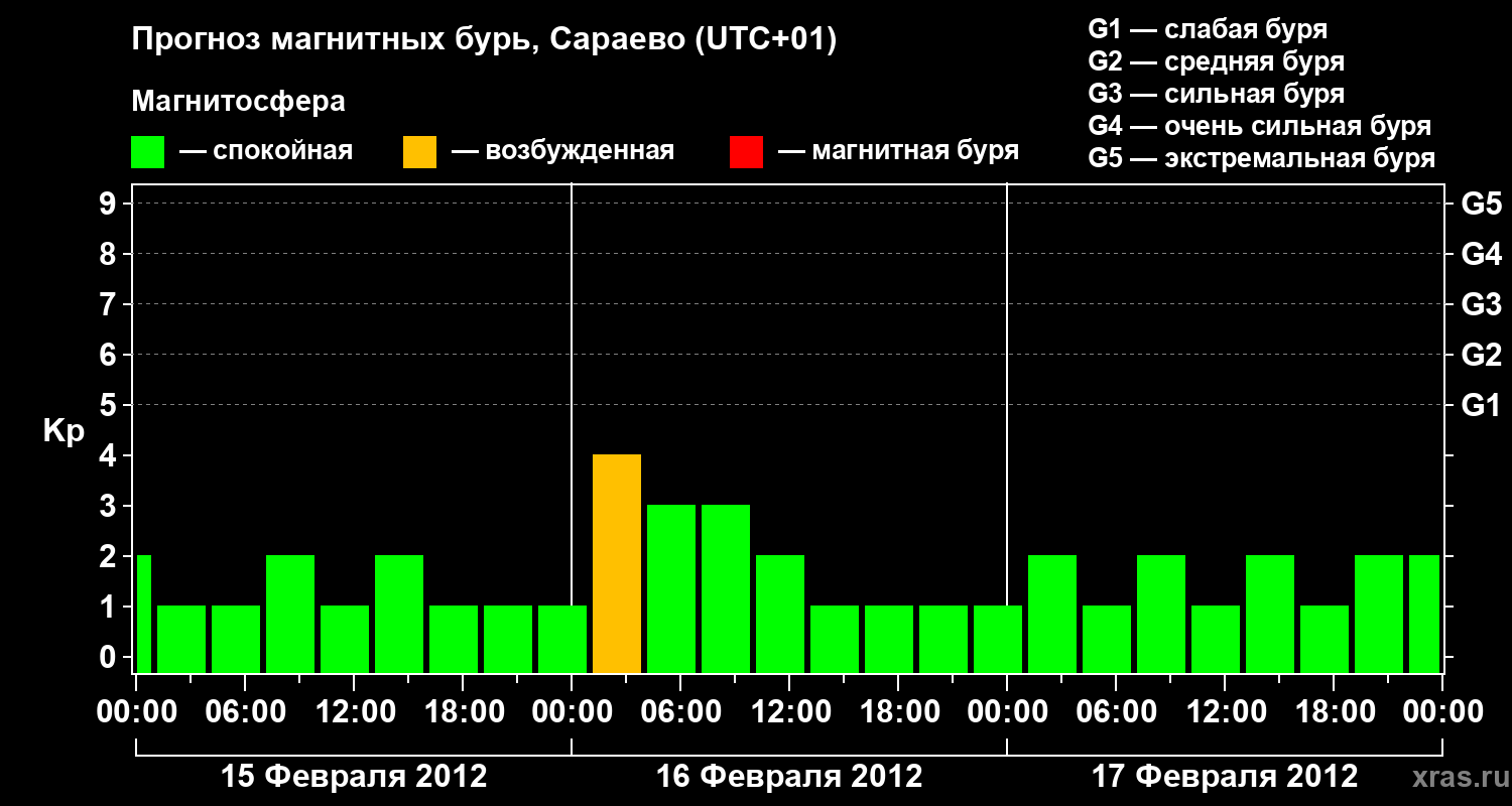 Прогноз магнитных бурь Сараево — 15 февраля 2012 года