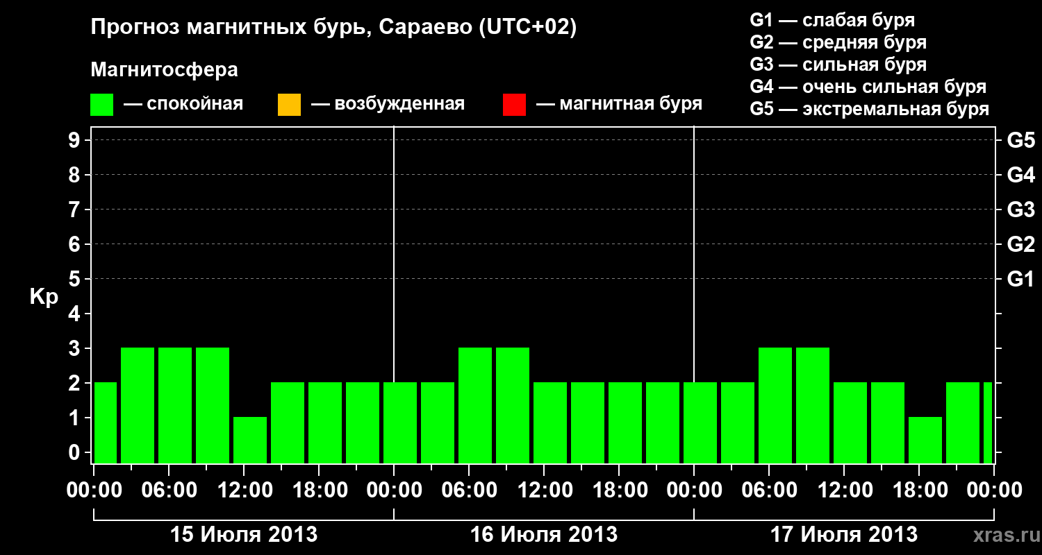 Прогноз магнитных бурь Сараево — 15 июля 2013 года