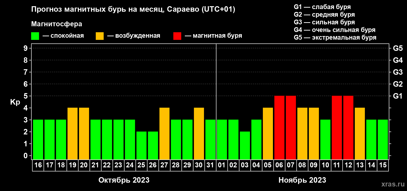 Прогноз магнитных бурь Сараево — 16 октября 2023 года