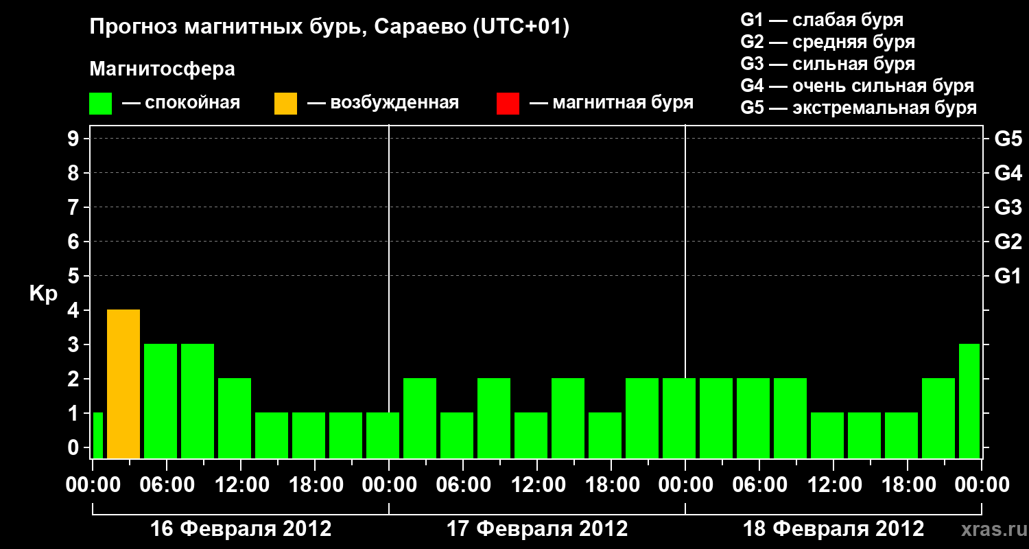 Прогноз магнитных бурь Сараево — 16 февраля 2012 года