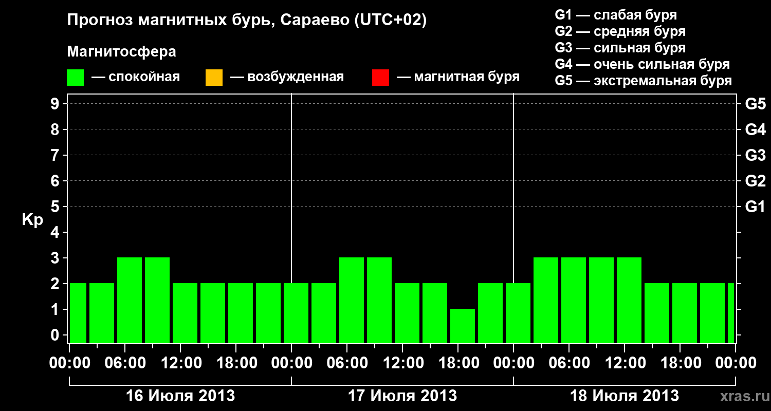 Прогноз магнитных бурь Сараево — 16 июля 2013 года