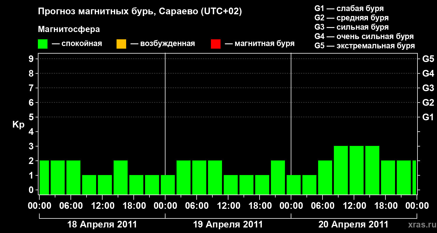 Прогноз магнитных бурь Сараево — 18 апреля 2011 года