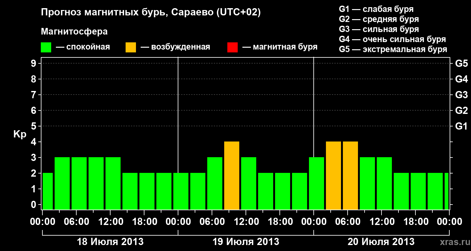 Прогноз магнитных бурь Сараево — 18 июля 2013 года