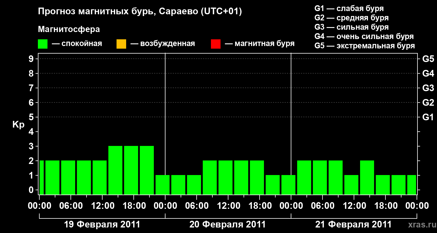 Прогноз магнитных бурь Сараево — 19 февраля 2011 года