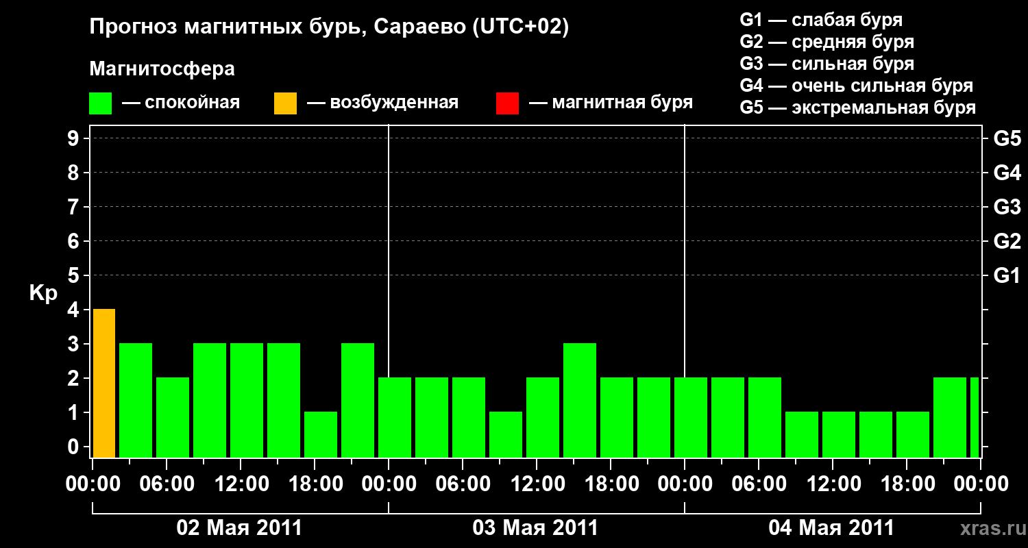 Прогноз магнитных бурь Сараево — 2 мая 2011 года