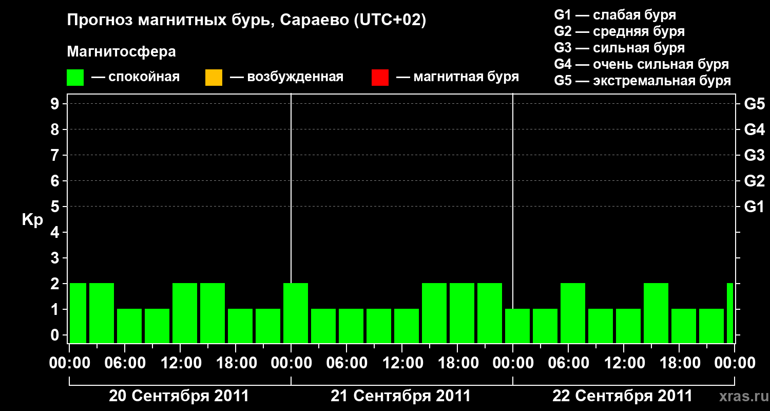 Прогноз магнитных бурь Сараево — 20 сентября 2011 года