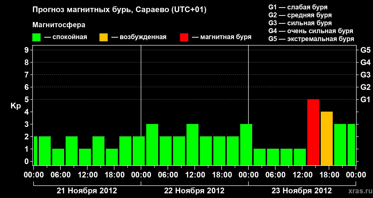 Прогноз магнитных бурь Сараево — 21 ноября 2012 года