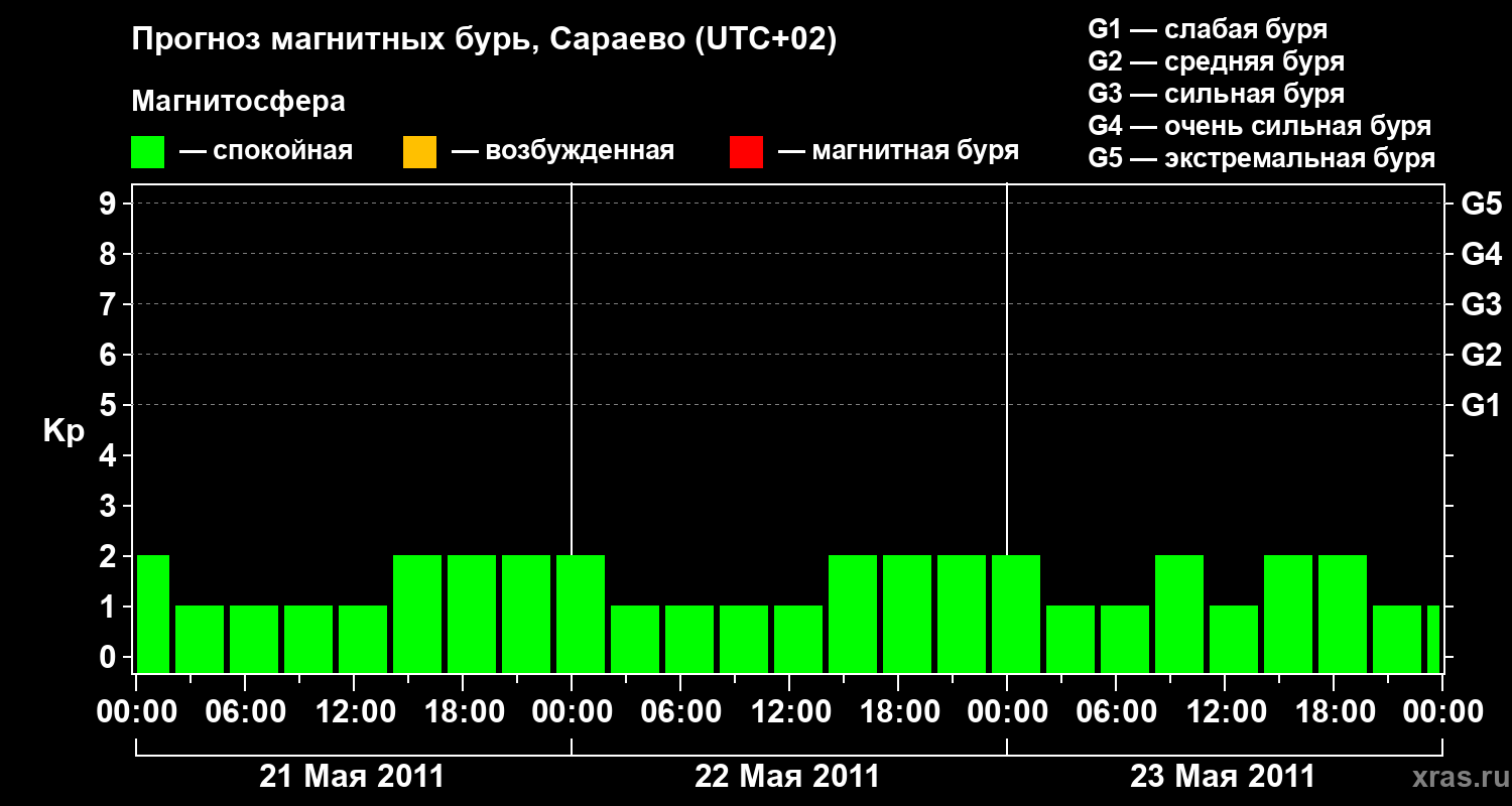 Прогноз магнитных бурь Сараево — 21 мая 2011 года