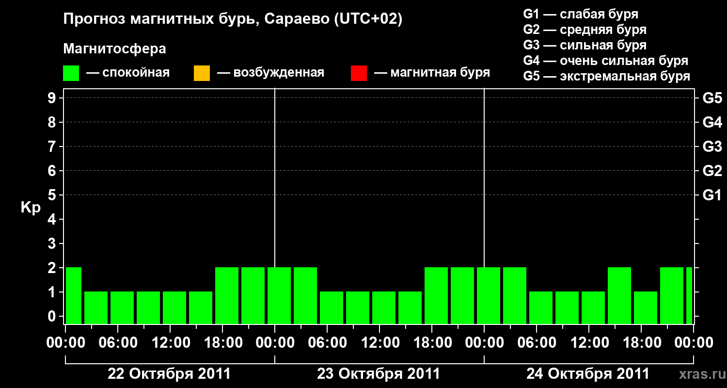 Прогноз магнитных бурь Сараево — 22 октября 2011 года