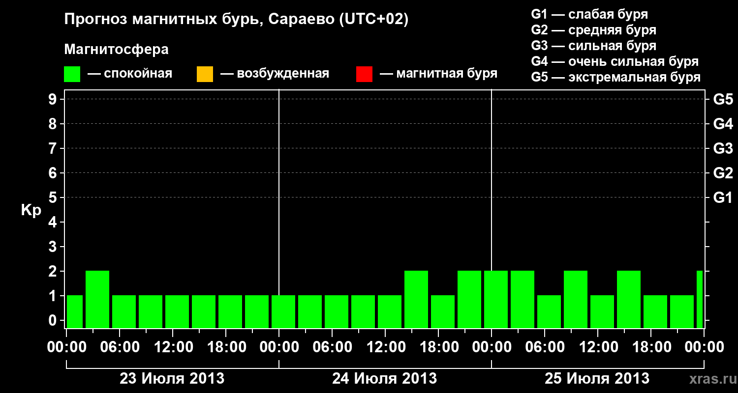 Прогноз магнитных бурь Сараево — 23 июля 2013 года
