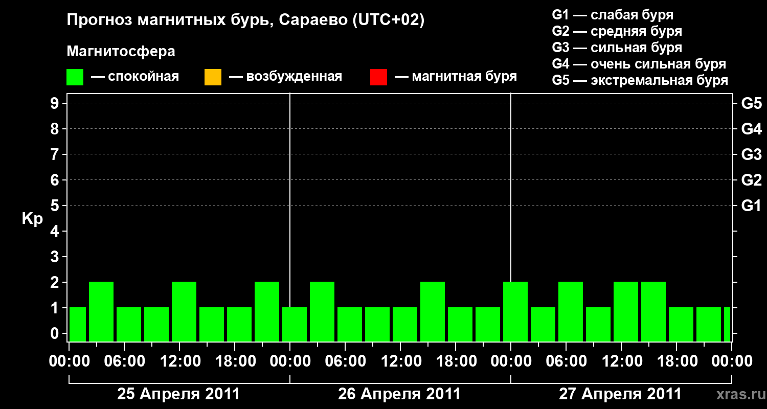 Прогноз магнитных бурь Сараево — 25 апреля 2011 года