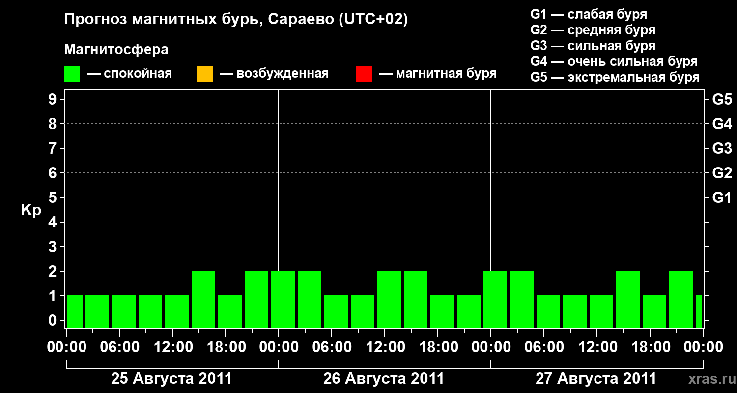 Прогноз магнитных бурь Сараево — 25 августа 2011 года