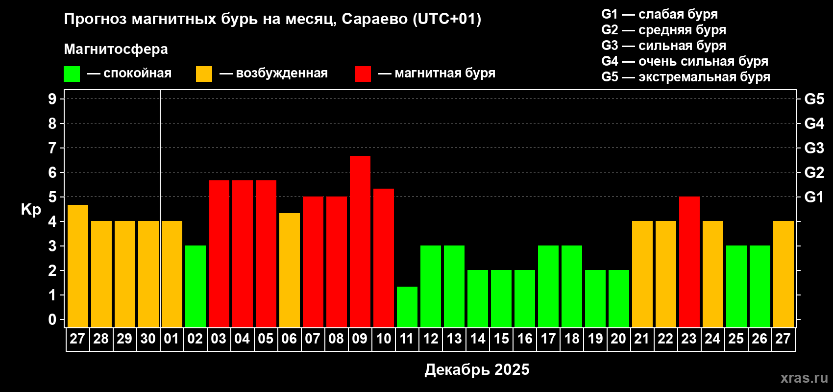 Прогноз магнитных бурь Сараево — 27 ноября 2025 года