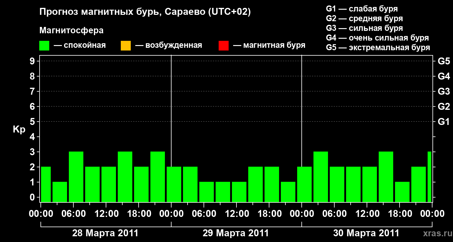 Прогноз магнитных бурь Сараево — 28 марта 2011 года