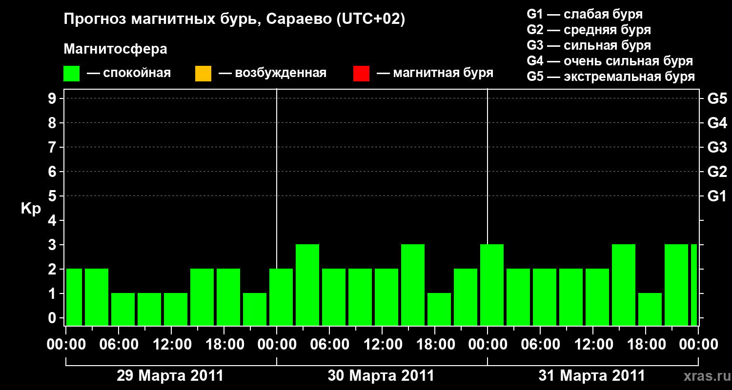 Прогноз магнитных бурь Сараево — 29 марта 2011 года