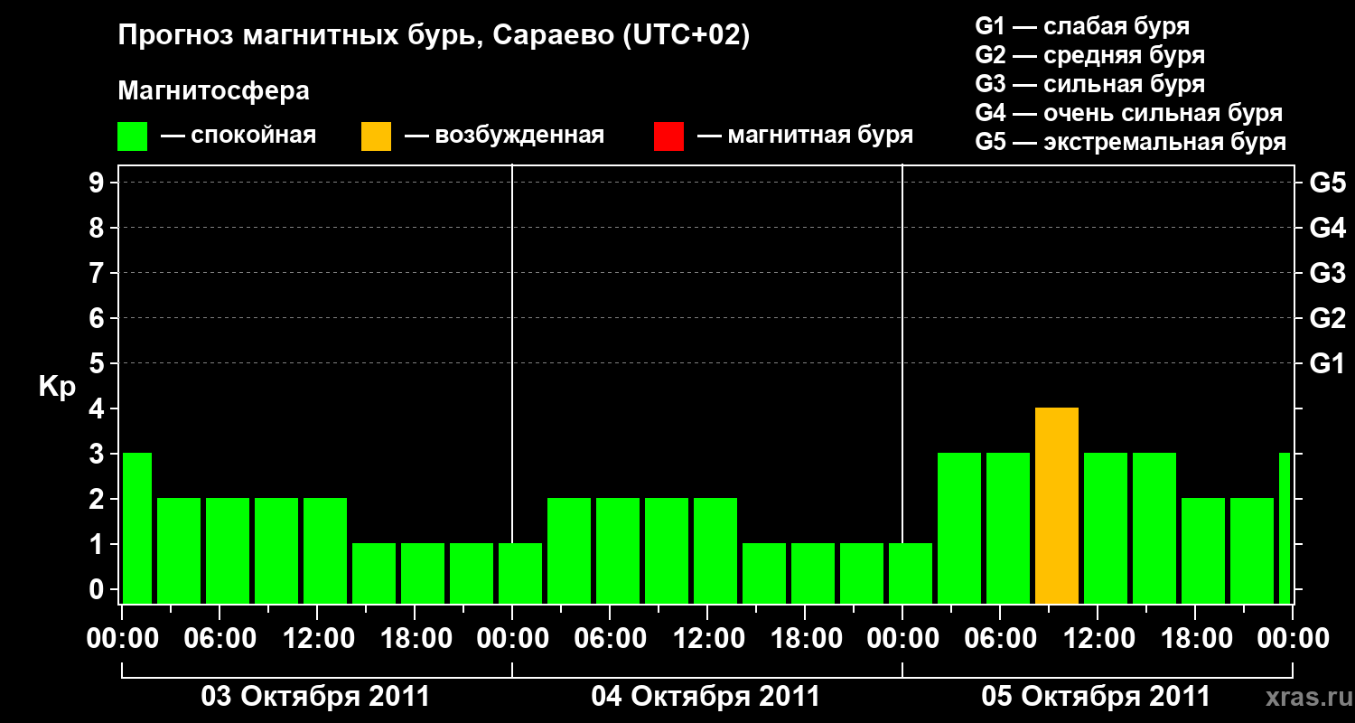 Прогноз магнитных бурь Сараево — 3 октября 2011 года