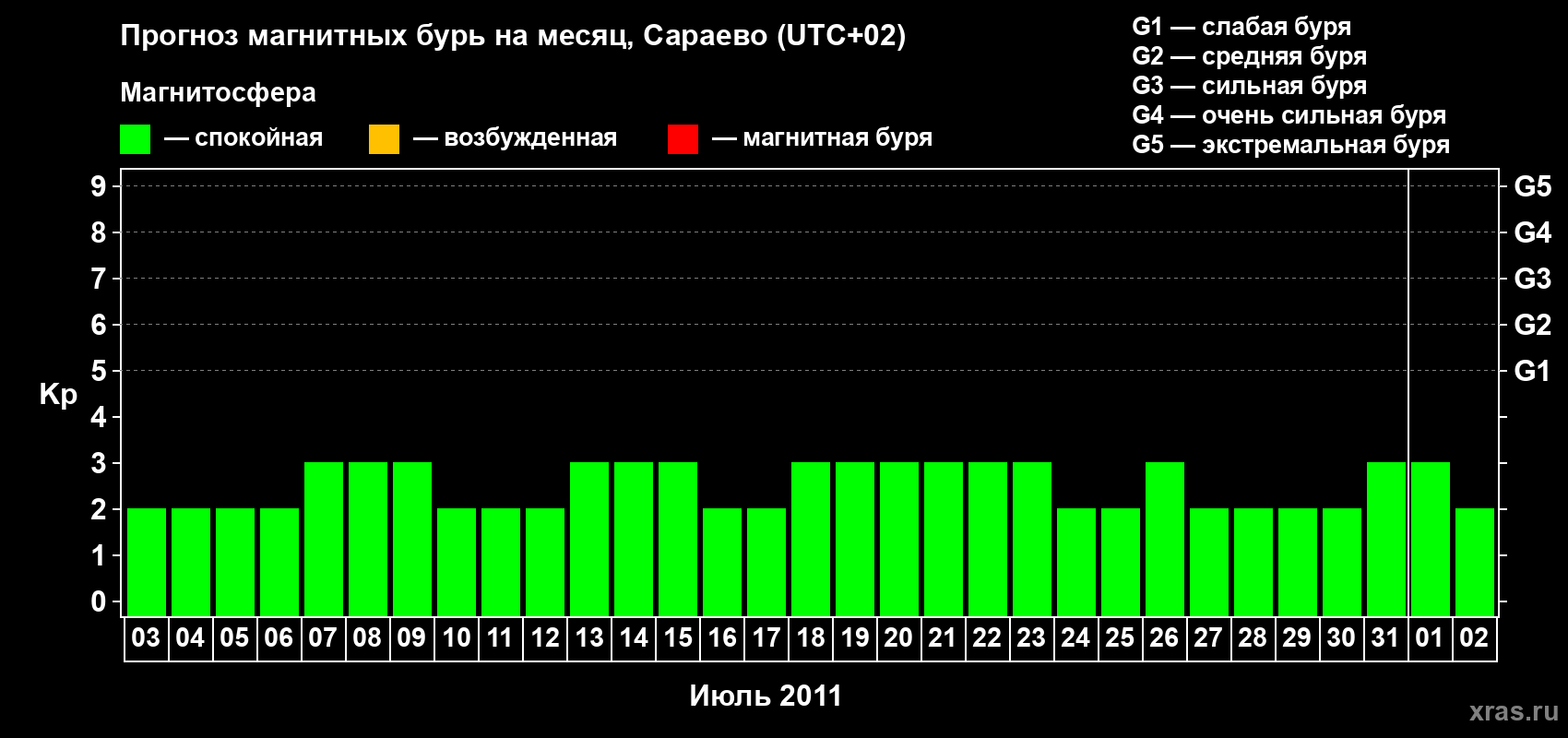 Прогноз магнитных бурь Сараево — 3 июля 2011 года